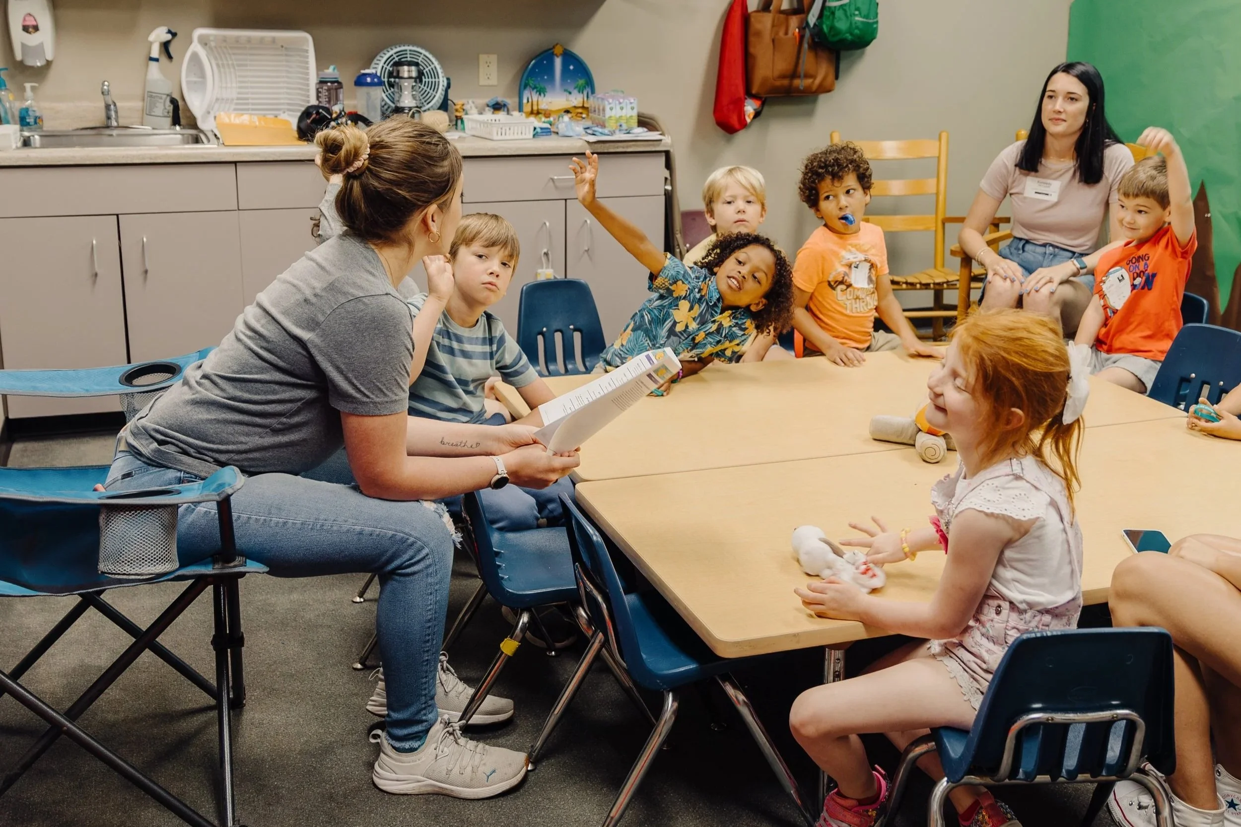 All Kirby Kids volunteers are vetted church members for at least 6 months, Ministry Safe-trained, and background-checked every 3 years.